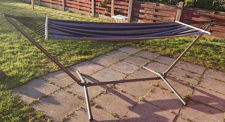 Jeg har længe gerne ville have en hængekøje, jeg syntes det er så hyggeligt at ligge der, under åben himmel, og bare slappe af. Men de her hængekøjer med stativ er mega dyre, men så er jeg jo så heldig, at have en dejlig mand og datter, der gav mig en før mors dags gave i dag 😉 .